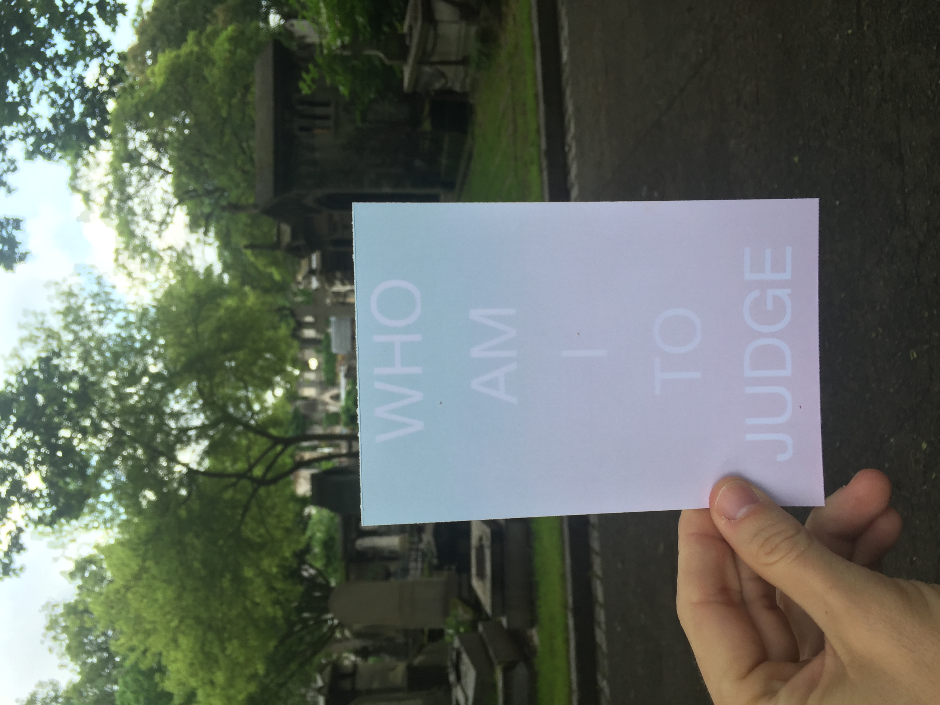 Kim drew from Pope Francis's words for this one. She wanted the card left in a park in Paris. While it's not really a park per se, I thought it went perfectly in the Montemartre cemetery.