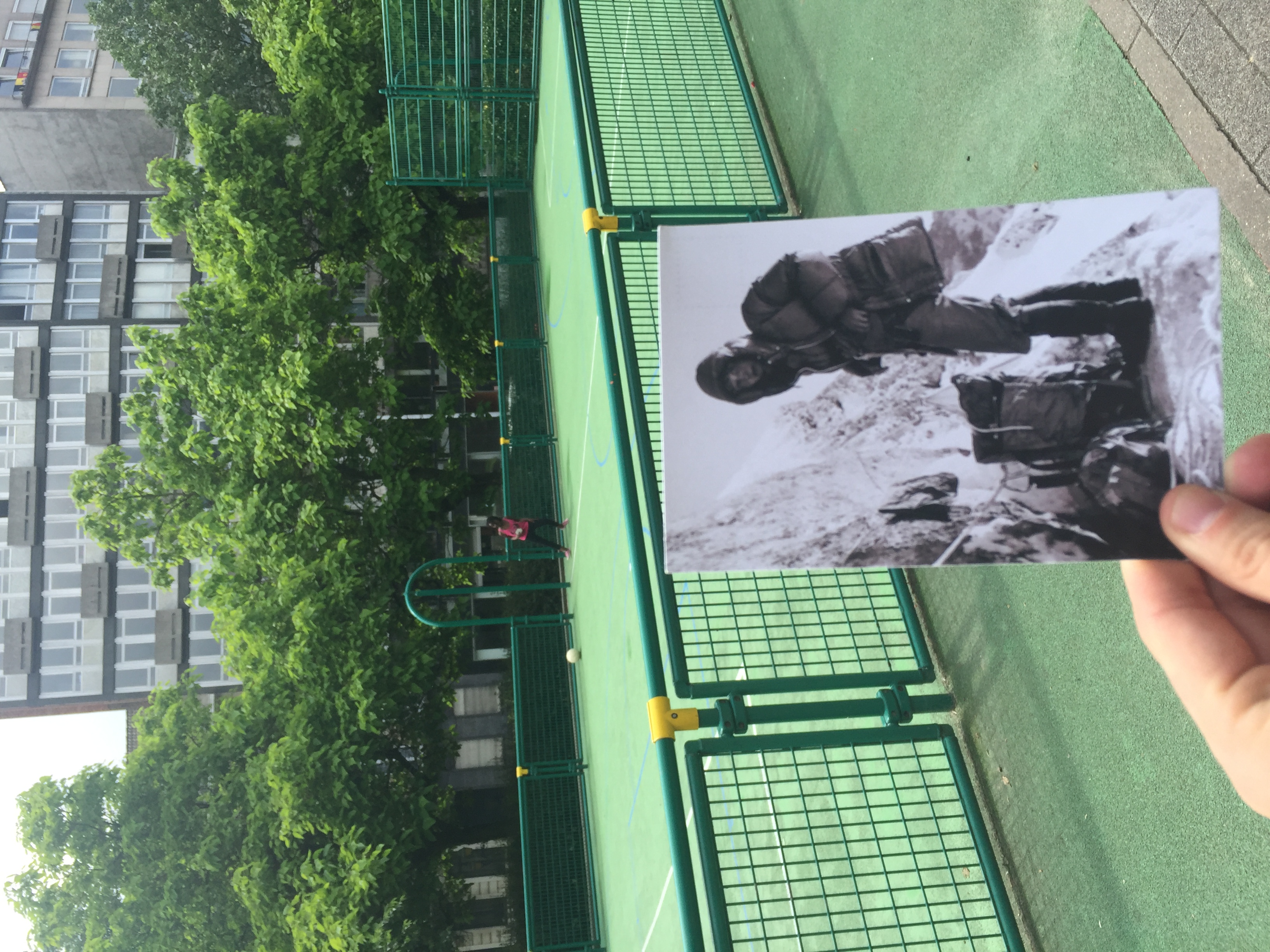 Molly wanted me to place this card anywhere women might play tennis and what do you know, my Brussels friend walked through a park yesterday and saw this badass girl playing tennis! I left the card on some gym equipment nearby.