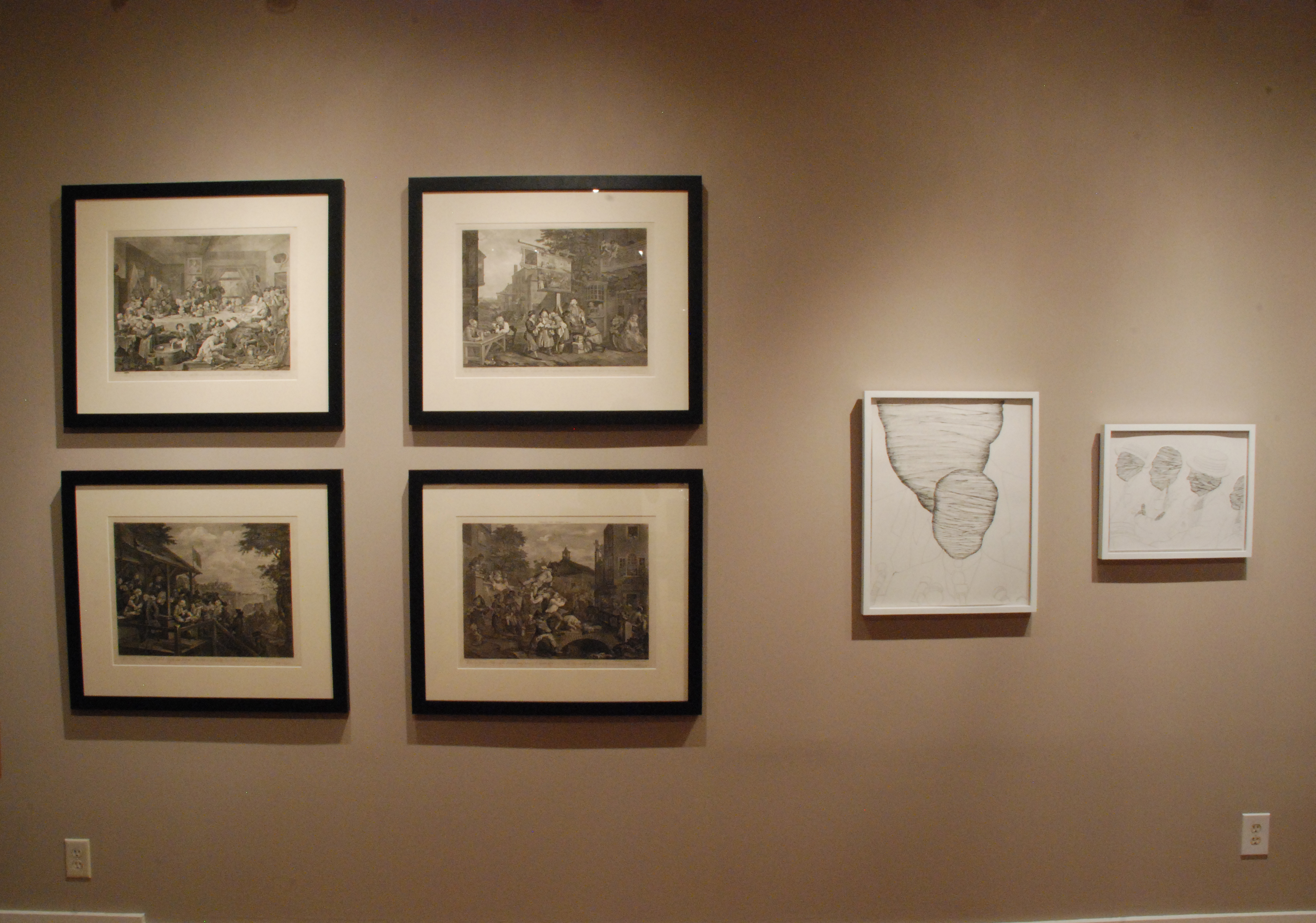 This show grew out of the artist's interest in tying together the works of William Hogarth (1697-1764) and Giovanni Battista Piranesi (1720-1778), two artists whose prints he curated from the gallery's extensive collection. Neel created work in dialog with these artists' enduring prints, tying an intentionally tenuous thread between Hogarth's political caricature's and Piranesi's imagined monuments.