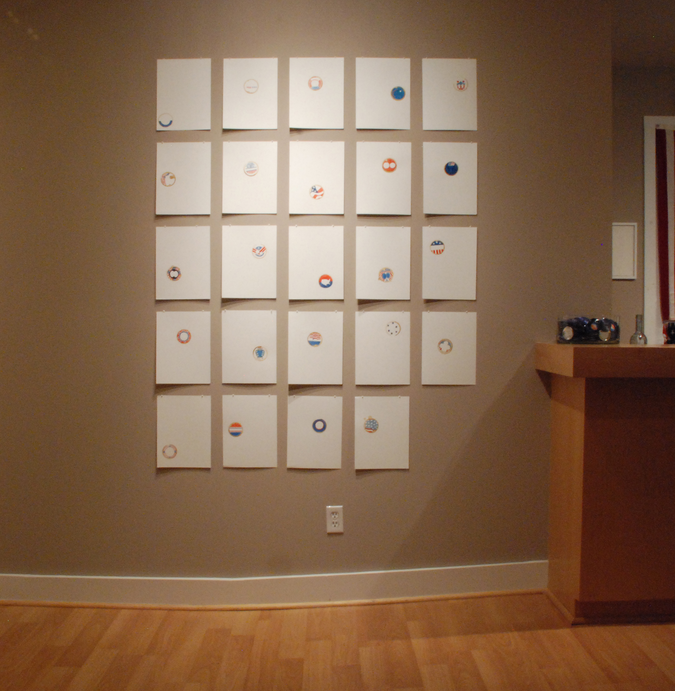 Taking these works as a jumping off point, Neel created multiple drawings, prints, and installations, incorporating detailed images of bandaged politicos, reworked campaign buttons, replicated political cartoons, moved national monuments and frustrating flower arrangements. With each of his new works Neel investigates the sometimes-overlooked formal qualities of politicized objects and images that influence national debate and shape our collective identity.