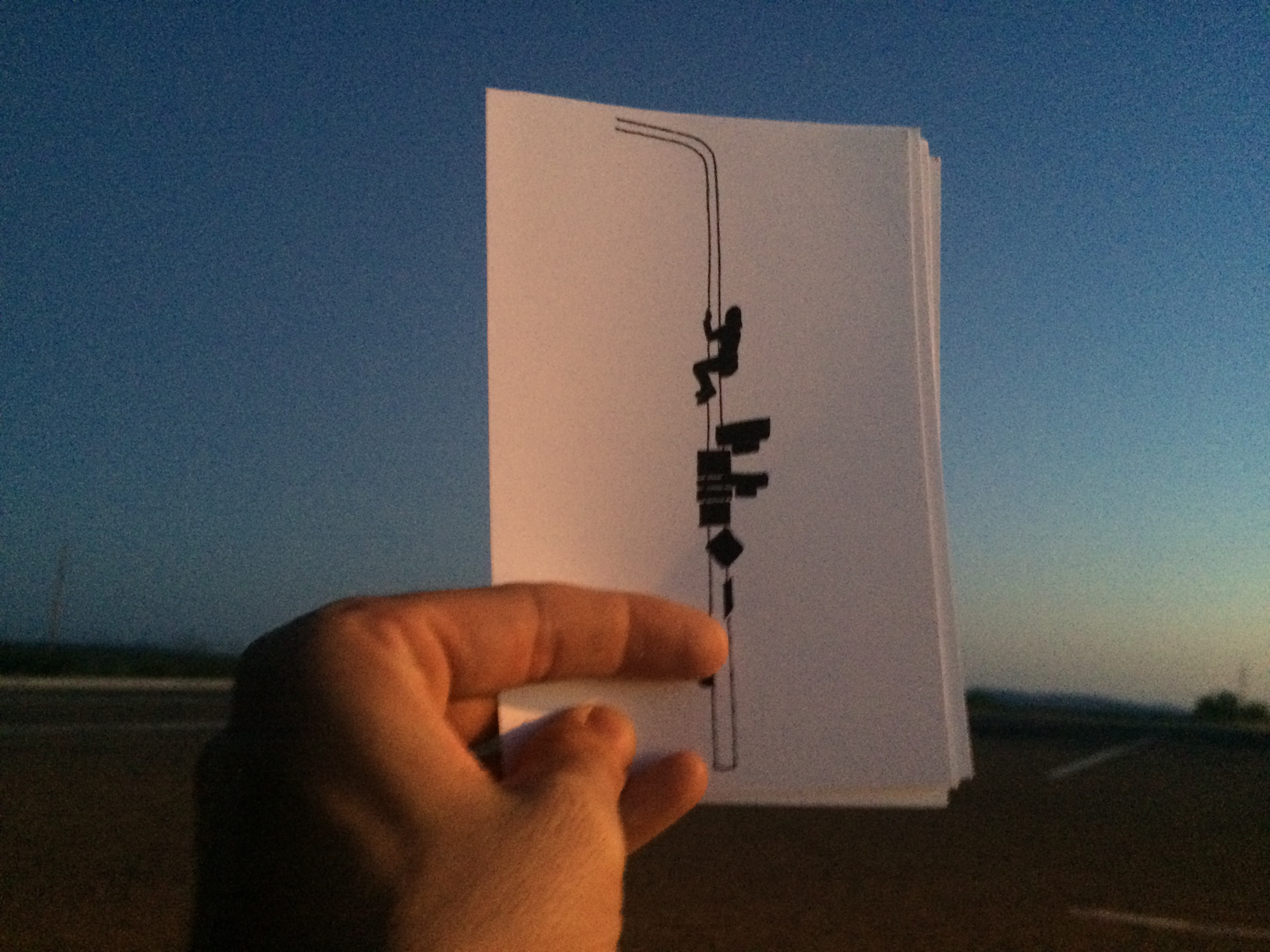 Nancy wanted her cards placed so the images of people climbing light poles would contrast with the landscape. I placed her cards by an empty rest area in the middle of a very flat Texas.