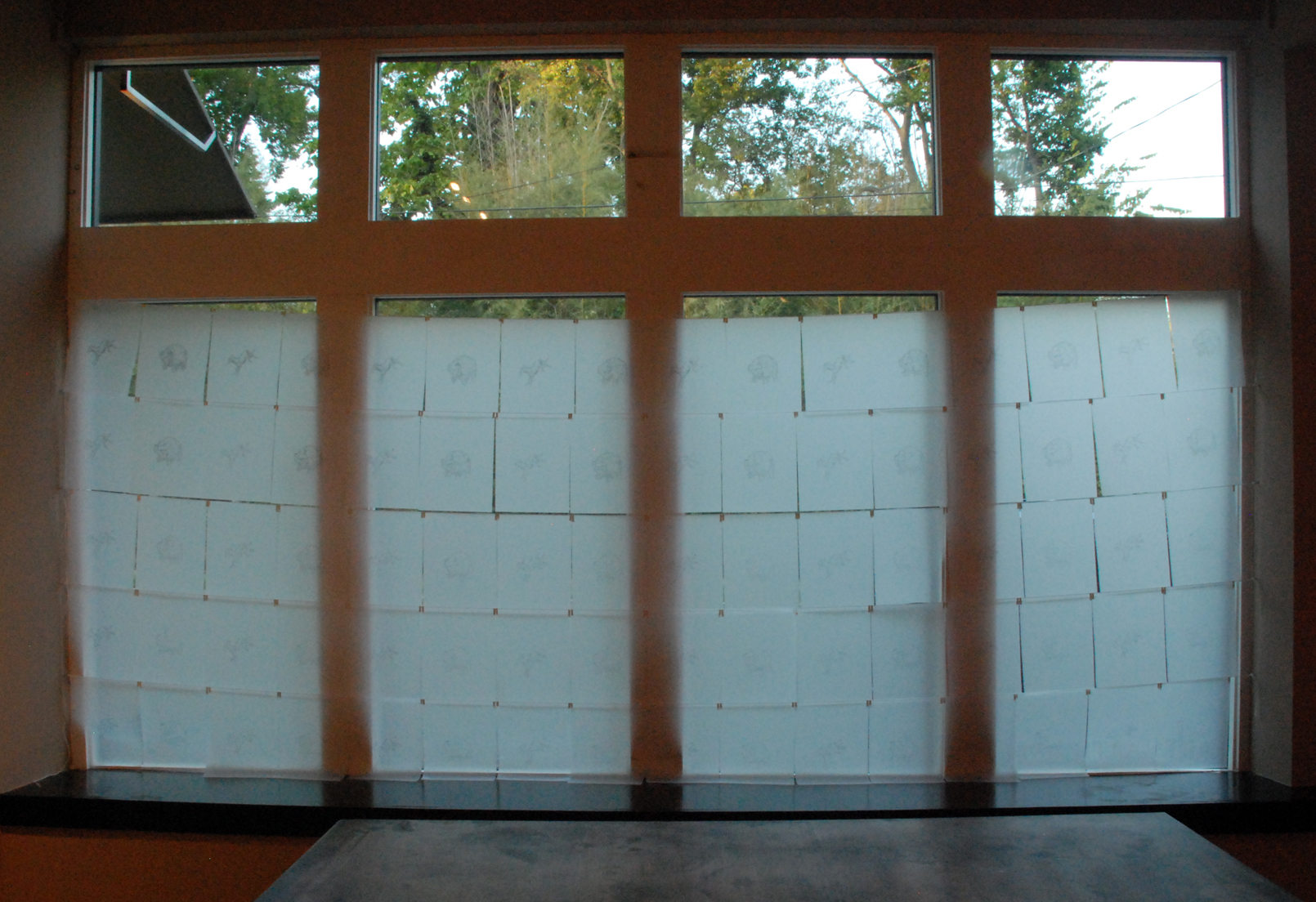 A tracing of the original cartoons symbolizing the Republican elephant and the Democratic donkey is traced again and again on subsequent sheets of paper until each image is unrecognizable.