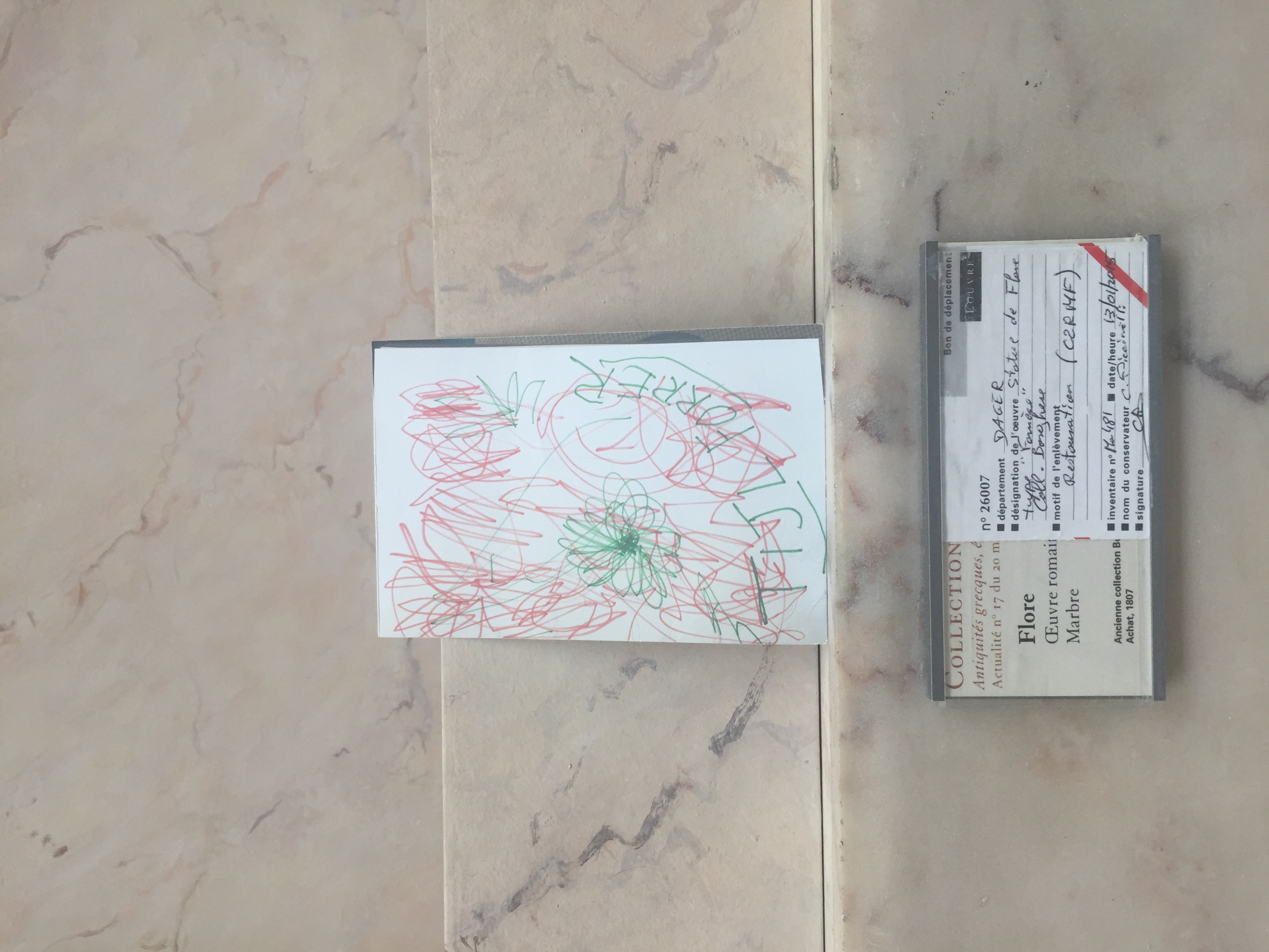 I collaborated on this postcard with Tijl Forrer, a kid I met while on a diverted train near Amsterdam. He was a cool kid. I placed this card in an empty display at the Louvre.